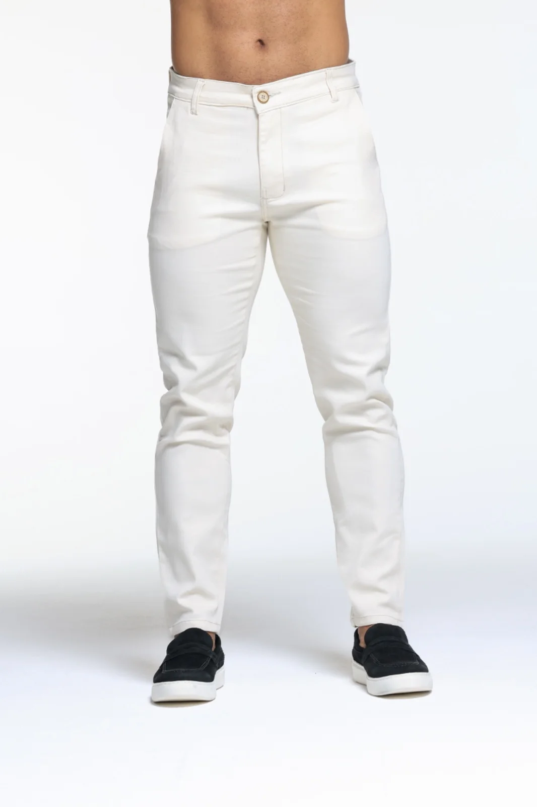 Calça de alfaiataria masculina off white com 72% algodão, 25% elastomultiéster e 3% elastano. Elegância, conforto e caimento impecável para compor looks sofisticados ou casuais. Versátil e moderna, perfeita do trabalho ao happy hour. Garanta a sua agora! ✨👖