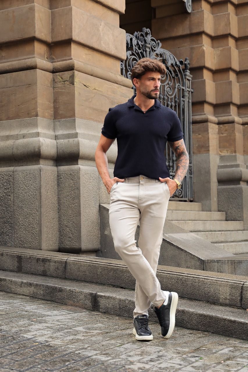 Calça alfaiataria slim masculina feita com 72% algodão, 25% elastomultiester e 3% elastano, unindo visual moderno, toque macio e elasticidade na medida certa para acompanhar sua rotina com conforto e estilo.
