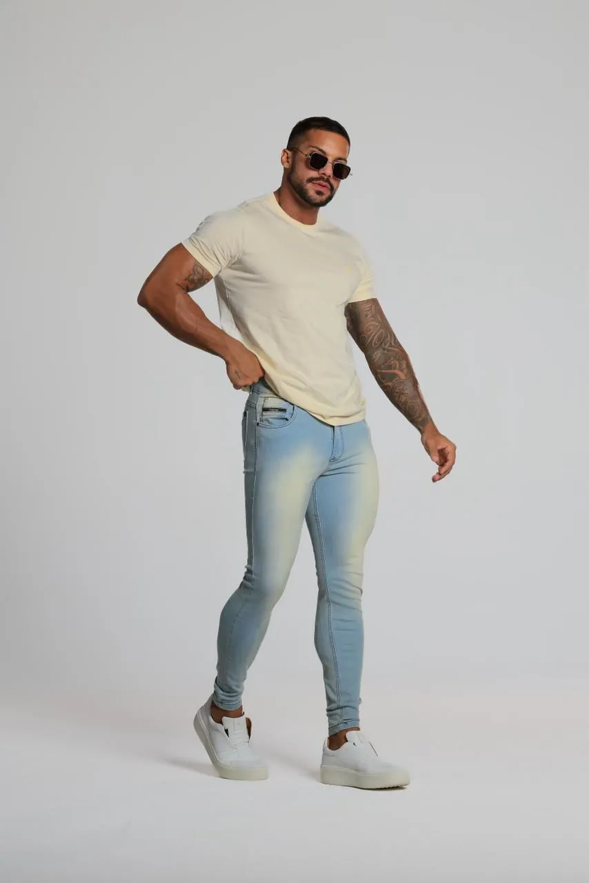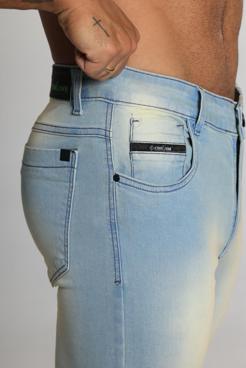 Calça jeans masculina com lavagem clara moderna, perfeita para compor looks versáteis e cheios de estilo. Produzida com 98% algodão e 2% elastano, oferece conforto, caimento impecável e liberdade de movimento. Aproveite os preços especiais do outlet e garanta já a sua com qualidade e economia!