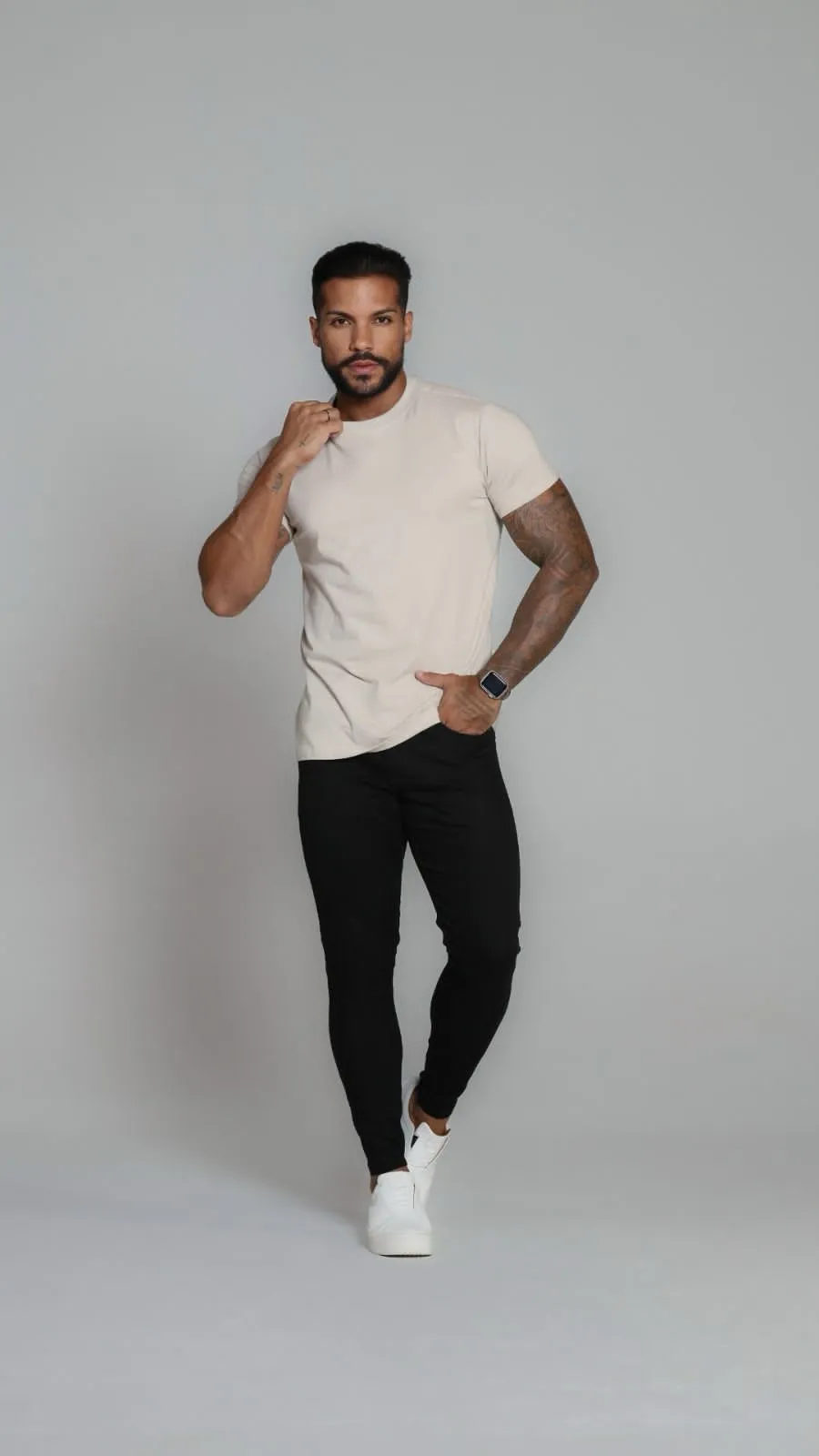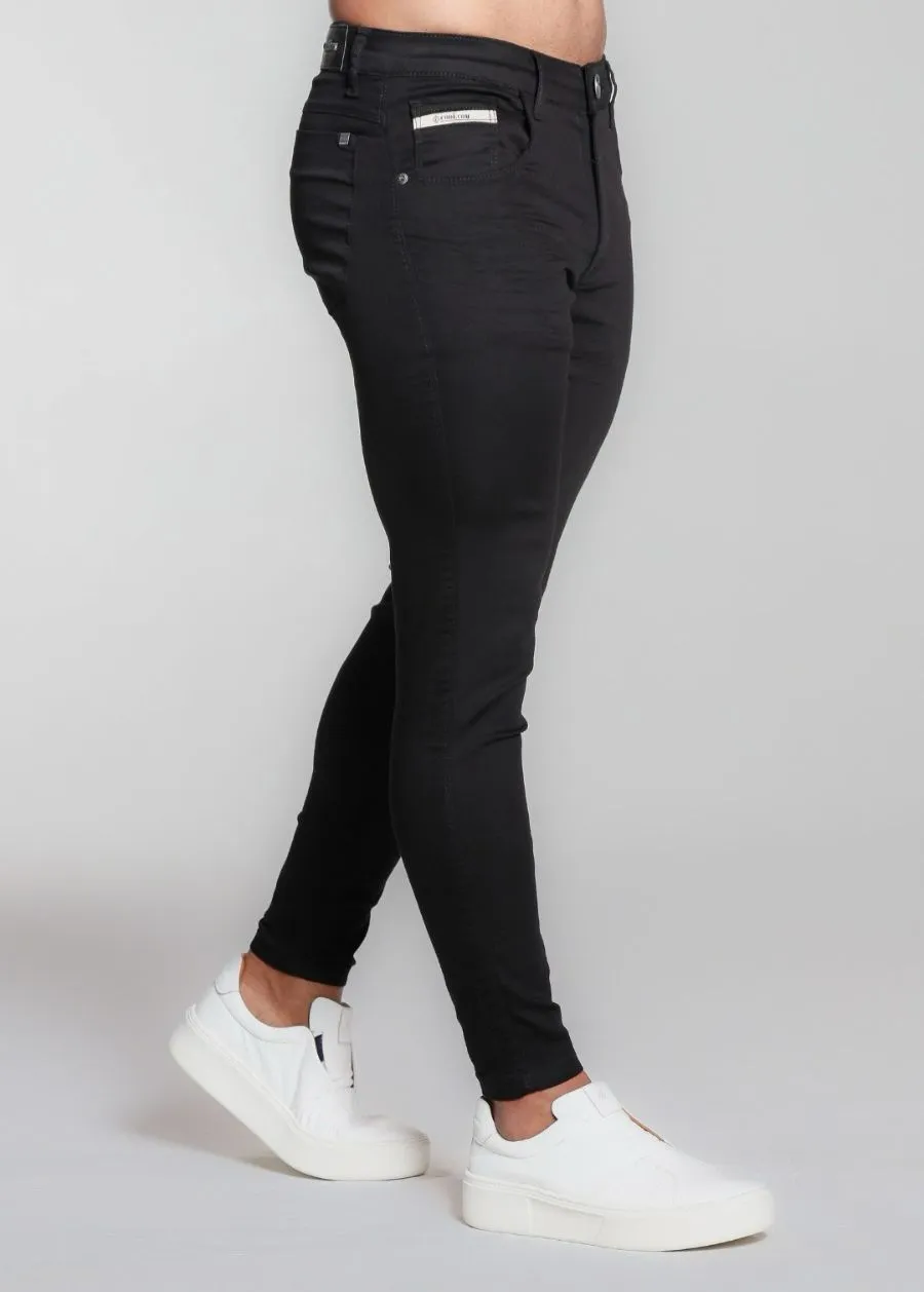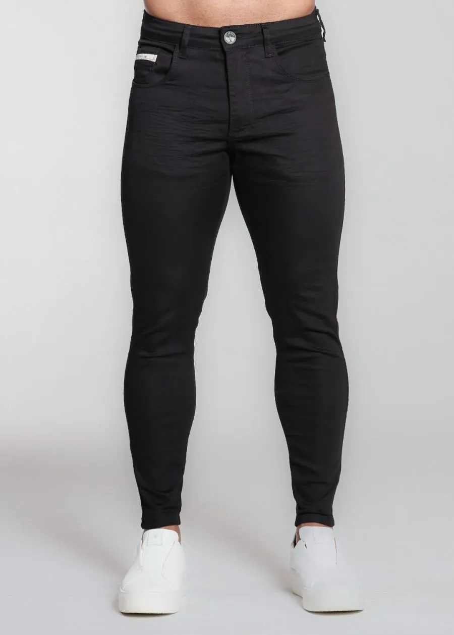 Calça jeans skinny masculina preta básica com detalhes no bolso e ajuste perfeito. Visual limpo, conforto e estilo que nunca sai de moda.