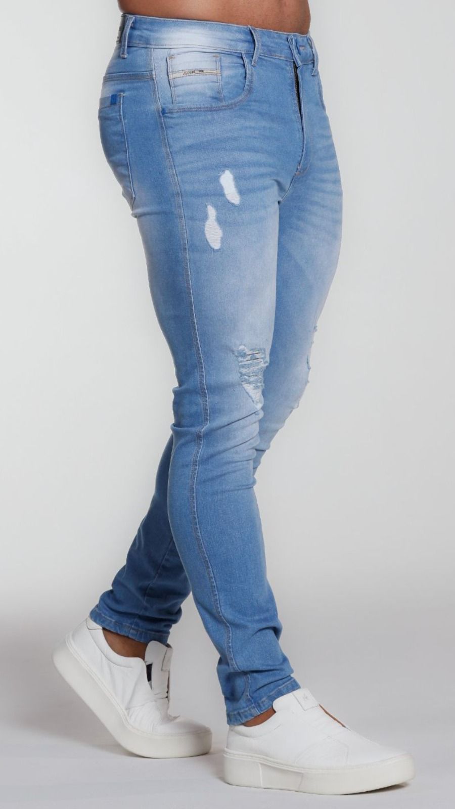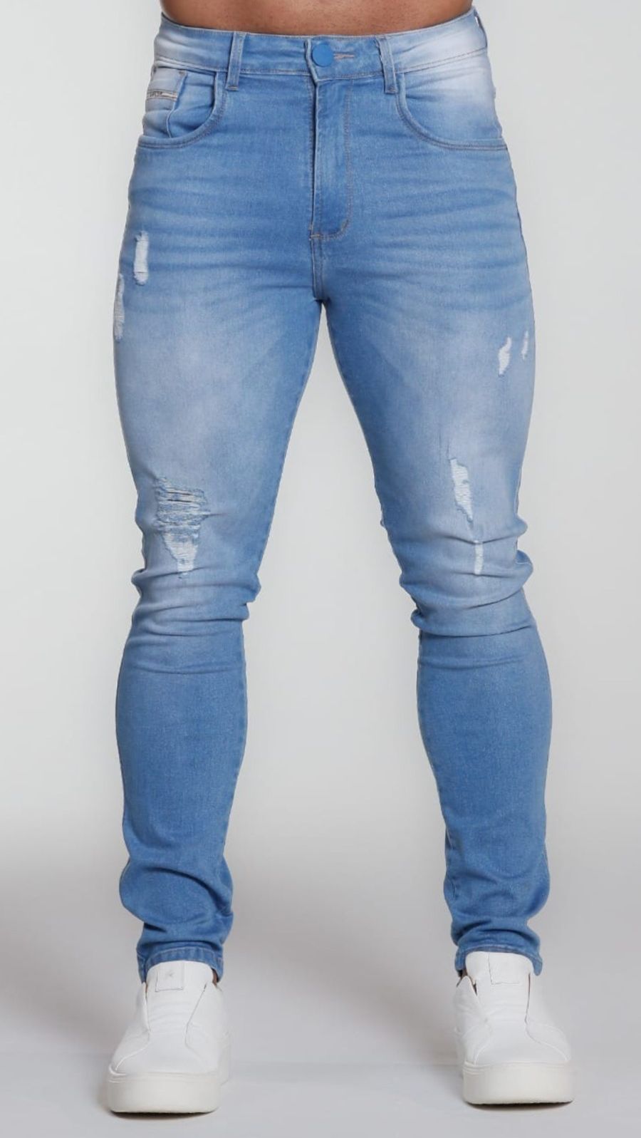 CALÇA JEANS SLIM SKY CLEAN RASGOS NO LASER